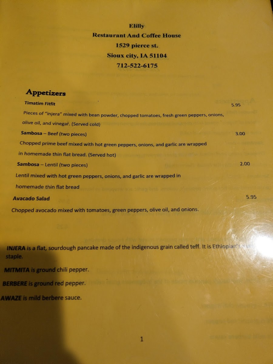 Introducing the Menu at Elilly Restaurant And Coffee House Ethiopian Food